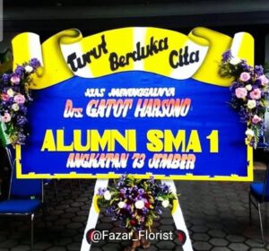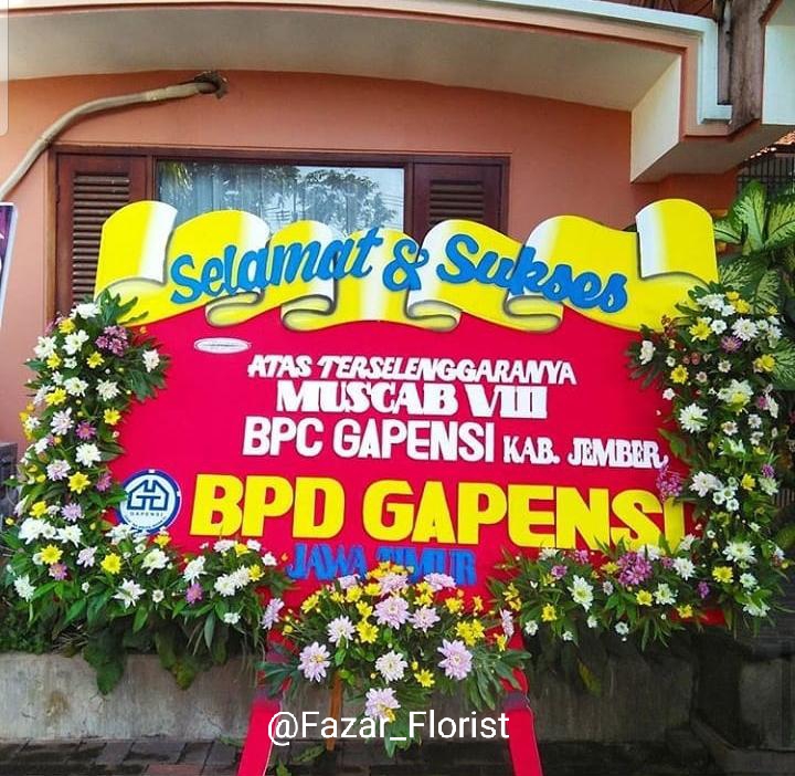Kamu mau pesan karangan bunga di jember dan sekitarnya ? di sini aja Fazar Florist membuat karangan bunga papan ucapan Happy Wedding, karangan bunga Duka Cita, karangan bunga Selamat & Sukses, karangan bunga Grand Opening, cukup tlp/whatsapp Fazar Florist dengan cepat menanggapi pesanan kamu.